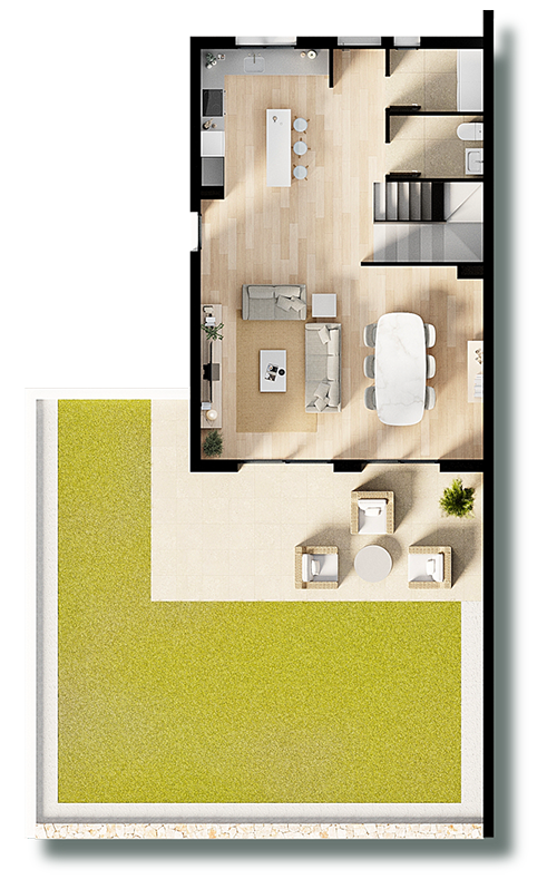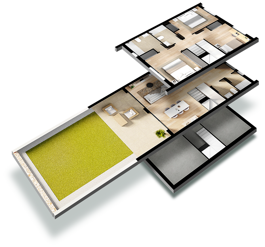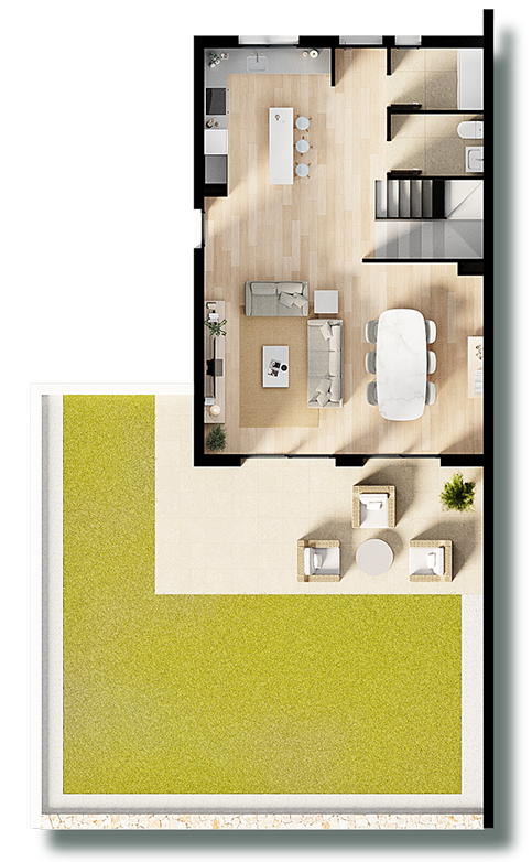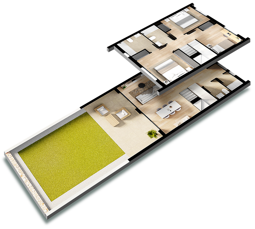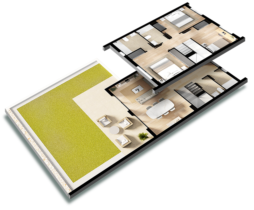 Las nuevas viviendas construidas con excelentes calidades forman un bonito residencial, con parking privado exterior, zonas ajardinadas, y zona de juegos infantil. Todas las viviendas tienen acceso a la piscina comunitaria. Adicionalmente, en los adosados es opcional añadir piscina privada.